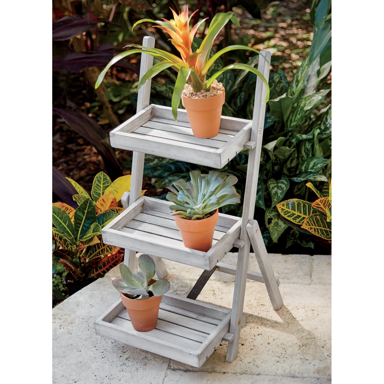 How To Make A Tiered Plant Stand. This simplistic style stand is ideal for a corner, particularly a well-lit one, and goes well with smaller, bush-style plants. Tiered planters are a great way to expand your garden without taking up a lot of space. A double tiered A-frame makes it possible for you to fit quite a few plants on this stand. A tiered plant stand is an easy project to fill any room in your home with vibrant plants and flowers.